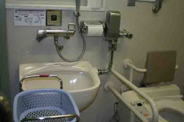 始まってすぐに思い知らされました。よくよく考えれば、当然と言えば当然だったのですが、スタッフのみなさんが「病院にとってユニバーサルデザインの配慮は生命線である」という強い共通の認識を持たれていることでした。「命の尊さはみな同じ」との見識からくる、ユニバーサルデザインへの思い入れを、垣間見たように思いました。そして、だからこそ私たちもご参加いただくみなさんと、病院のこの姿勢に応える、今後に活かしていただけるUDチェックにしなければ、の思いで当日を迎えました 1.ユニバーサルデザインチェック の順でユニバーサルデザインチェックを行いました。 ワークショップ “見つけたUD!” A班からC班までそれぞれにユニバーサルデザインチェックをして、それぞれに見つけたユニバーサルデザインを3つ書き出します。さらに、班ごとにそれらを3つにまとめ、代表者が発表しました。 (写真:思わぬ所にバリアーが) ● まず、どの班も駐車場の使いやすさを上げています。障がいを持つ人が自分で運転してくる場合のために、玄関近くに駐車スペースが設けてありました。一般駐車場も、列ごとに駐車可能かどうかの電光表示などがあり、止める場所を探してうろうろすることもなくなりました。 (写真:真剣二検証する様子)まとめ ~データ・ワークショップから言えること~ 当日は、「この病院は、『ユニバーサルデザイン』という言葉のなかった昭和62年に建設」され、『ユニバーサルデザイン』という言葉はなかったけれど、体にダメージを抱えた方に安全で安心して使っていただけるように、たとえば避難階段への開閉扉の、少しの力で開く長いレバーハンドルが取り付けられている、など見過ごしてしまいそうなところまで、担当のスタッフの方に説明していただきながら、院内外を回ることができました。 UDチェックに参加された方々の第一声です。高低2段に手摺があり、しかも冷たくない素材でできている、総合窓口には高低2種類の受付カウンター・記載台があるなど、『ユニバーサルデザイン』という言葉はなかった時すべての叡智と技術の粋を集めて建設された建物、ハード面の整備が進んでいる、と参加者のみなさんから高く評価されました。 真:真剣二検証する様子)トイレも清潔で使いやすい、との声が多く出されました。特に総合会計脇のみんなのトイレには、荷物の載せられる脱衣かごが置いてあって、このさりげない心配りがとてもうれしく思いました。 列ごとに駐車可能かどうかの電光表示があるなど、駐車場の使いやすさも高く評価されました。 ただ実は、UDチェックのご相談をいただくきっかけでもあったのですが、玄関近くに障がい者用の駐車スペースはありますが、いつ来ても止められない、そこから東に行ったところに障がい者用の思いやり駐車場もありますが、バスやタクシーあるいは乗せてきてもらった場合は、正面玄関前で降りればすぐ入り口ですが、たとえば車椅子に乗り換えて玄関入り口へ向かうには、雨の日雪の日などはかなり距離があってたいへん、との声を聞きました。 一般的な医院の、障がい者用の駐車スペースと医院入り口との距離を思い出しても、如何せん遠く感じられ、総合病院・大病院なるが故のスケールデメリットになっているように、参加者の方々と一緒に歩きながら思いました。 また、障がい者用のおもいやり駐車場利用カードの制度も、初めて来た人はカードを持っていない訳で、困って駐車場の非常呼び出しをしたら、「カードを取りに守衛室まで来てください」と言われて途方に暮れた、という声も耳にしましたので、利用する方の状況を考えると、今少しの工夫をお願いしたいと思いました。 スタッフの方々のホスピタリティをそこここに感じられただけに、とても残念に思いました。病院内では、ボランティアの方がいるおかげで、初めてでも決して不安になることなく、安心していられましたので、院内ばかりでなく、来院者が病院の敷地内に入ってから帰路に着くまでも病院の範囲、と考えていただき、できれば混雑時だけでも、駐車場にも誘導のボランティアのような方がいて、小さなお子様連れの乗り降りや、車からの車椅子の出し入れや移乗のときに、手を貸していただけたらどんなに助かるだろう、と思いました ○「もうちょっとなんだけど・・・」 (写真:もうちょとなんだけど!)