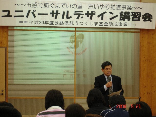 | 平成20年度、飯舘村とNPO法人ユニバーサルデザイン結は、福島県の公益信託うつくしま基金の第6回協働コースに「ユニバーサルデザインが五感で紡ぐまでいの里 思いやり推進事業」を応募し、採択されました。 |