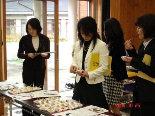 | 平成20年10月25日、新・伝統食コンテストを行いました。地域に根ざした伝統食を祖父母から孫へ、そして未来へ繋げていく事で、地域や環境に配慮する心を育み、また、世代を超えた「新・伝統食」を生み出す事を目的としました。子供からお年寄り、障がいを持った方でも、同じように食する楽しみを味わう事ができる料理を提案してもらうことが、食のユニバーサルデザインです。 |