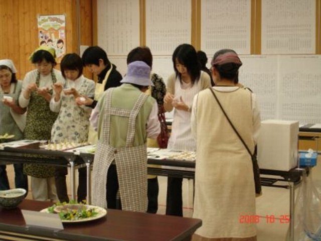 村民の方々の試食している様子 |