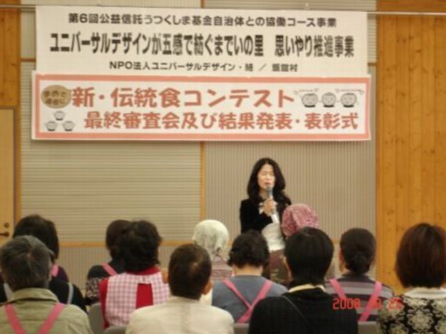 地域に根ざした伝統食を祖父母から孫へ、そして未来へ繋げていく事で、地域や環境に配慮する心を育み、また、世代を超えた「新・伝統食」を生み出す事、つまり子供から咀嚼力の衰えた高齢者や、障害者を持った人でも、調理の仕方により同じく食する楽しみを味わう事ができる料理を提案してもらうことが、食のユニバーサルデザインです。