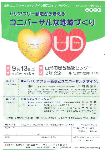 | ■山形ユニバーサル・デザイン研究会主催のシンポジウム「バリアフリー新法から考えるユニバーサルな地域づくり」の報告 |