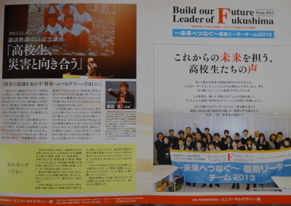 | この事業は、東日本大震災を経験した子どもたちが、様々な立場の人たちと交流し、震災を振り返ったり、復興について学んだり、感じたりすることで、これからの福島の復興に対し、リーダーとしての自覚を持ち、自ら行動できるよう、その一歩として実施しました。 |